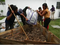 Después colocamos una capa de tierra para formar el 25% restante del sustrato. También agregamos cerca de 2 kg de humus de lombriz, el cual cosechamos de nuestros lombricomposteros, tenemos uno de lombrices rojas californianas y uno de lombrices que extrajimos de Ciudad Universitaria mezcladas con otras del género Amynthas.